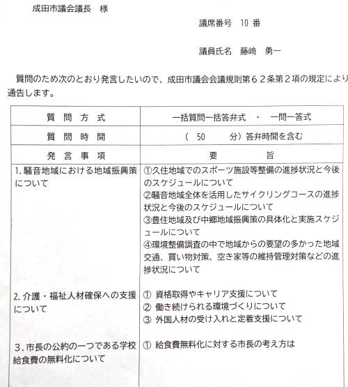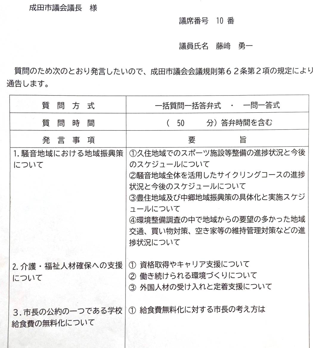 12月3日、 12月定例会の一般質問に登壇しました。 「暮らしの安心と未来への投資につながる騒音地域の振興」 「介護・福祉人材の確保」 「学校給食費無料化」 の3つのテーマについて質問しました。 地域の未来を見据え、 議場でしっかり声を届けました。