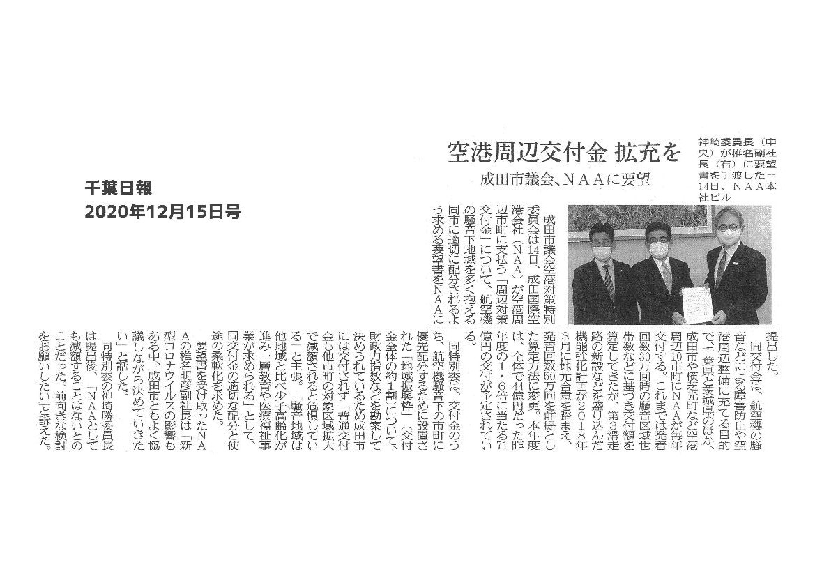 空港周辺市町村に支払う「周辺対策交付金」に関する要望書を提出