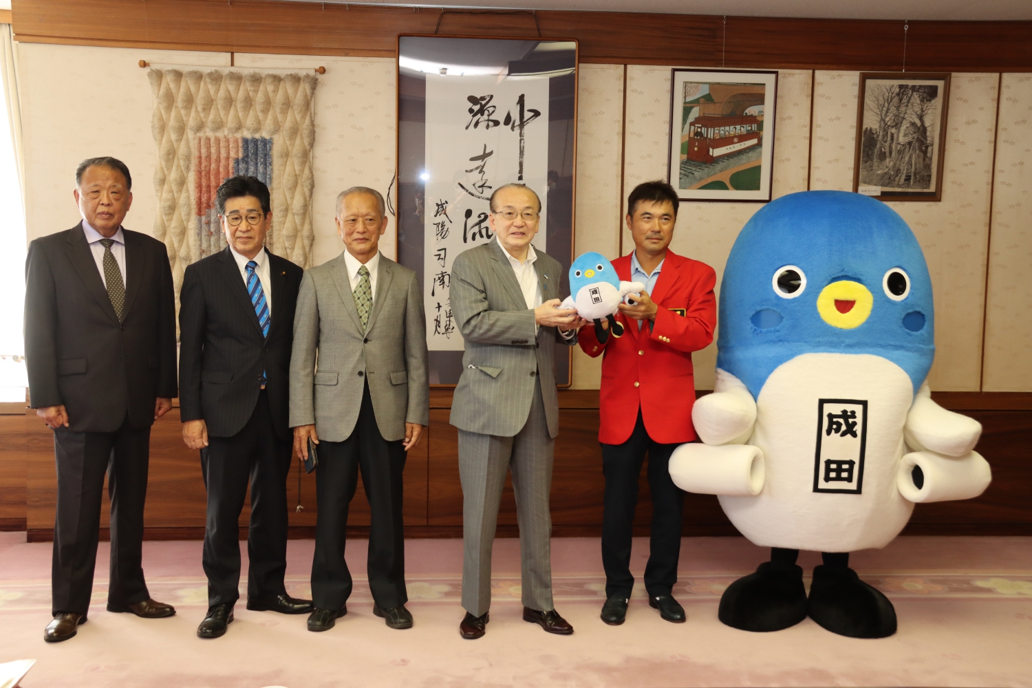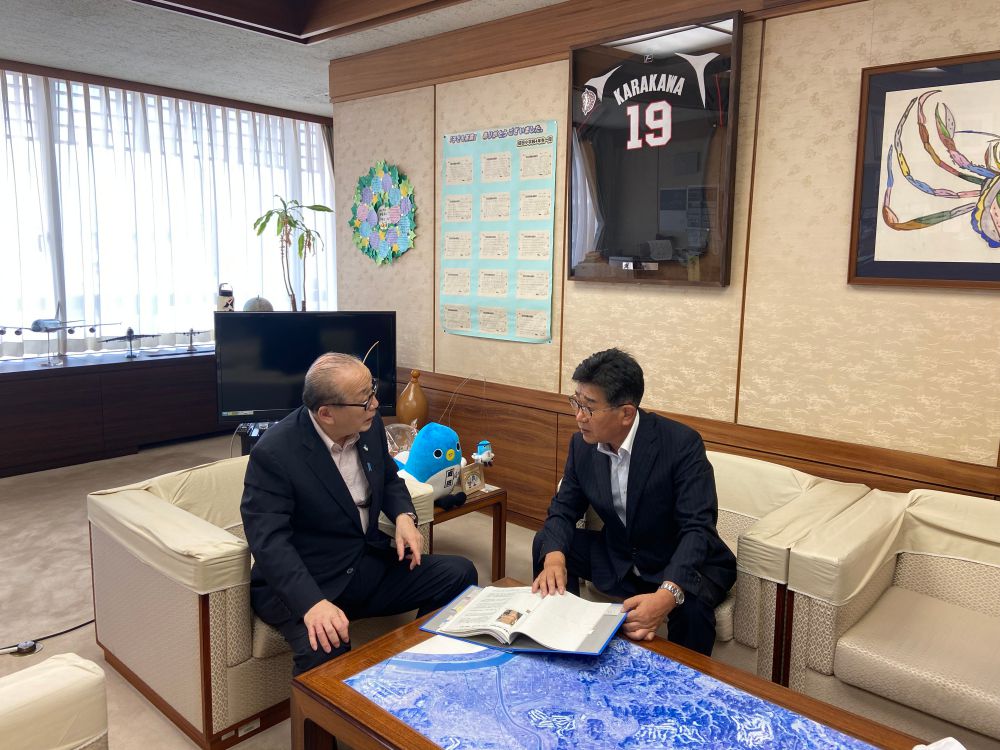 プロゴルファー森田徹選手が市長を表敬訪問時に同席