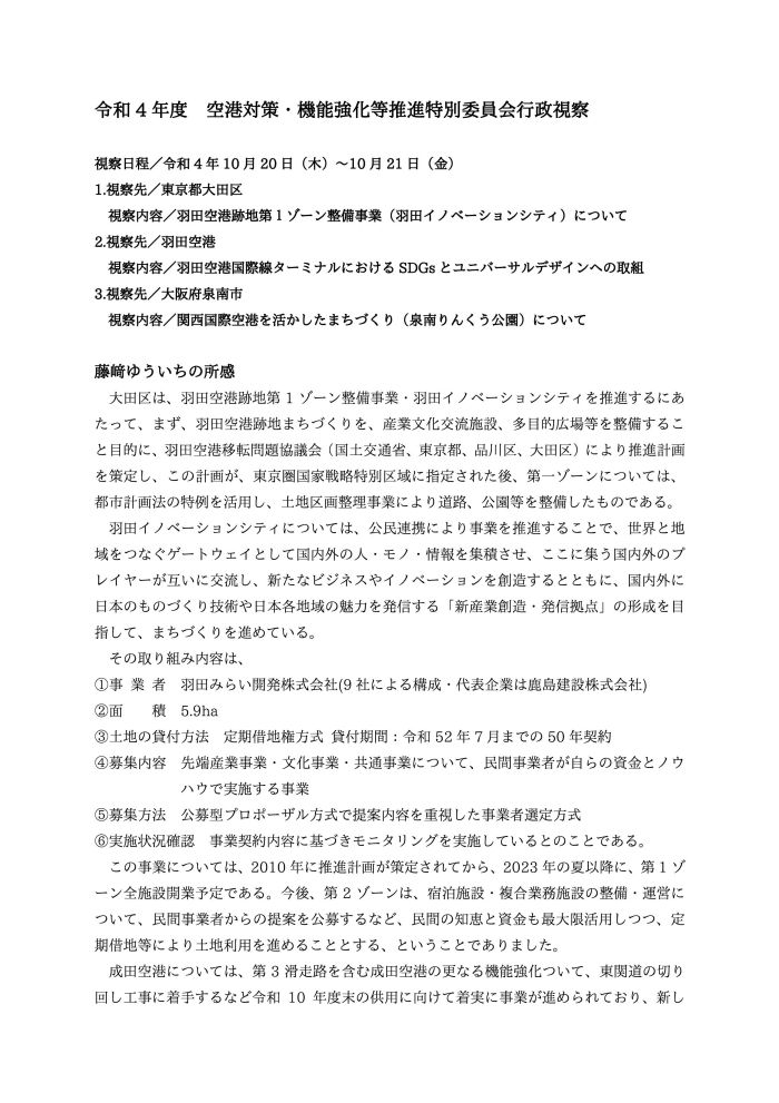 令和4年度 空港対策・機能強化等推進特別委員会 行政視察