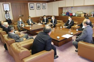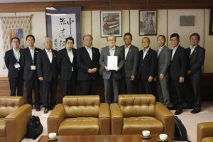 武田好久かとり農業協同組合代表理事組合長と、栗原廣行成田市農業協同組合代表理事組合長が、小泉一成成田市長へ要望書提出時に同席しました。 (集合写真右から2番目が藤﨑)